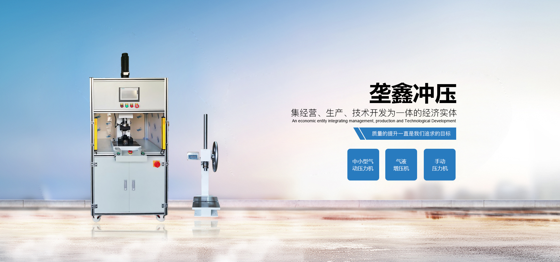 煙臺壟鑫沖壓設(shè)備有限公司是集經(jīng)營、生產(chǎn)、技術(shù)開發(fā)為一體的經(jīng)濟實體,專業(yè)致力于中小型壓力機、非標壓力機的設(shè)計開發(fā)和制造。在引進德國、日本等國家先進的鉚壓控制技術(shù)及機器設(shè)計理念的基礎(chǔ)上,結(jié)合相關(guān)行業(yè)的實際需要,開發(fā)出各種臺式、落地式氣動壓力機、手動壓力機、氣液增壓機、氣液增力缸、旋鉚機、無鉚釘鉚接機等鉚接設(shè)備。產(chǎn)品應(yīng)用領(lǐng)域廣泛,適用于汽車零件、電子、電器、家電、包裝、五金、等行業(yè)。公司視質(zhì)量為生命,并一貫遵循對每一臺產(chǎn)品負責,對每一位用戶負責,真誠為您服務(wù)。 自公司成立以來,秉承“誠信,創(chuàng)新,專業(yè)”的經(jīng)營理念,以優(yōu)質(zhì)的產(chǎn)品,完善的售后服務(wù),樹立良好的品牌形象,服務(wù)于廣大新老顧客。我們竭誠于各位同仁攜手并進,共謀發(fā)展。